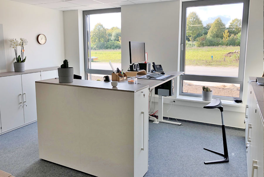 An unserem neuen Standort, Böken 2 in Brügge nahe Bordesholm, stehen uns 400 qm Bürofläche und 1.000 qm Betriebshalle zur Verfügung. Damit steht uns auch für die Zukunft genügend Potential zur Verfügung, den hohen Anforderungen unserer Branche gerecht zu werden.