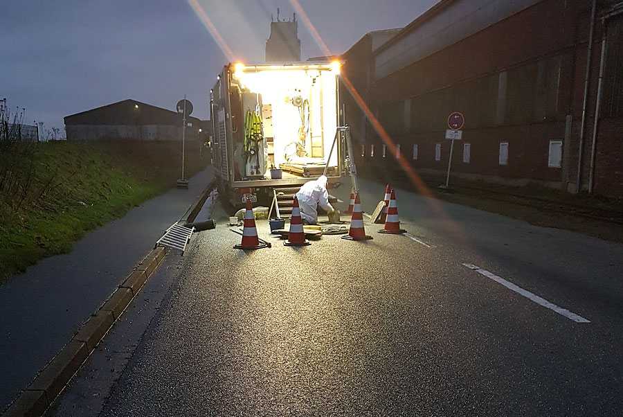 Die Schächte wurden durch die Flut (Hafenbecken) eingestaut. Eine Rückstausicherung gegen Einstau aus dem Hafenbecken war nur bedingt durchführbar, daher richteten sich die täglichen Arbeitszeiten nach dem Tidenkalender. Der sehr hohe Grundwasserstand erschwerte die Sanierung der Anschlussleitungen und verlängerte die Aushärtezeiten erheblich.