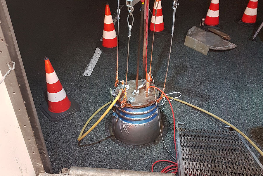 Die Sanierung der Schächte erfolgte mittels Vertiliner. Die Erneuerung der Gerinne mit Kanalklinker und die Sanierung der Einbindungen von Anschlussleitungen mittels Mörtel und Harz. Die Anschlussleitungen wurden mit Linern saniert.