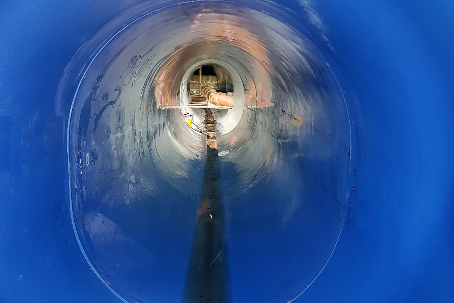 Nach Anbindung der Liningrohre in den Schächten wird der entstandene Ringraum mit einer Betonsuspension verfüllt.
