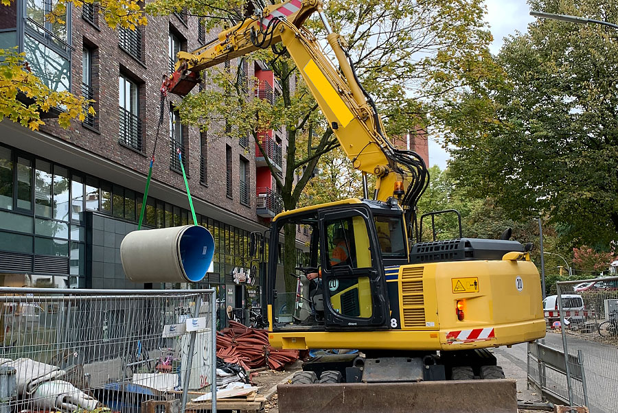 Beim Rohrlining werden vorgefertigte Rohre in einen vorhandenen Kanal eingebaut.